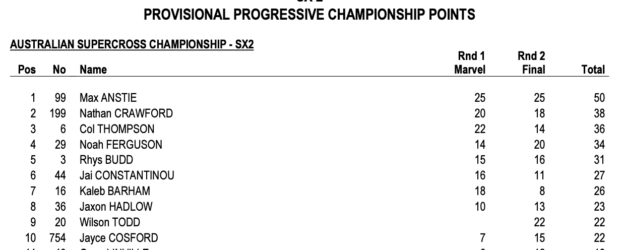 | Max Anstie (Honda) | Fox Australian Supercross Championship | SX2 |