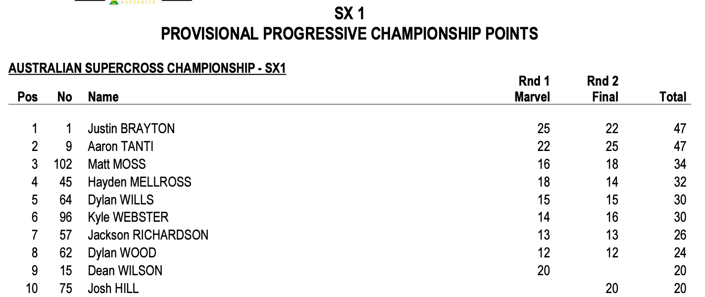 | Justin Brayton (Honda) | Fox Australian Supercross Championship | SX1 |