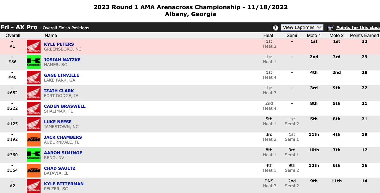 | All 2022 Results | Ricky Carmichael Amateur Daytona Supercross (RCSX) Results | NA |