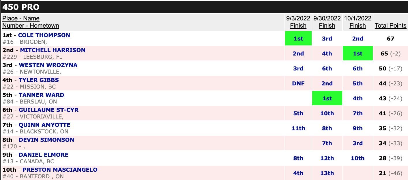 | Mitchell Harrison (GasGas) | Canadian Triple Crown (Combined) | 250 |