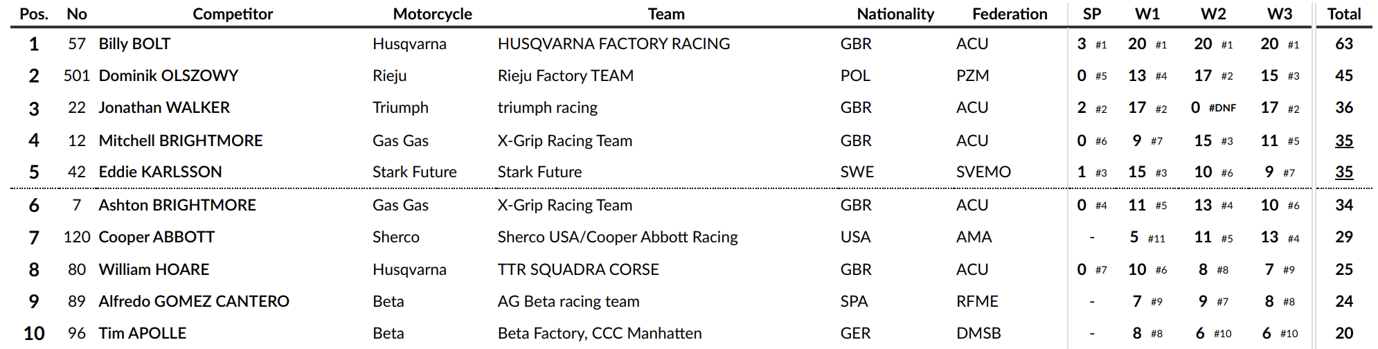 | TBD | FIM SuperEnduro World Championship | Prestige Class |
