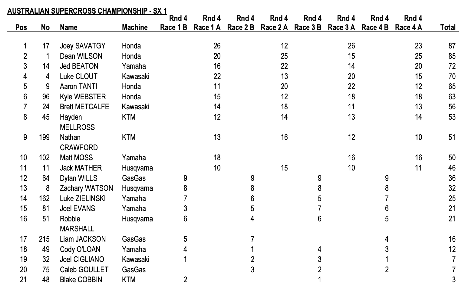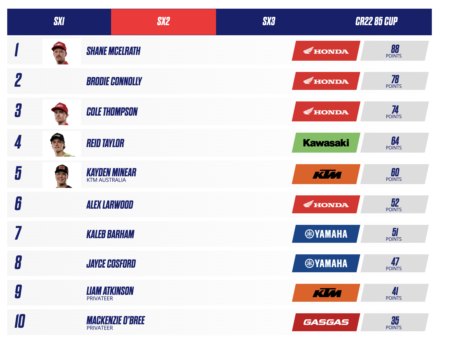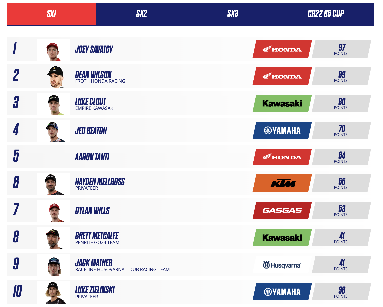 | Hunter Lawrence (Honda) | AUS-X Open | SX1 |