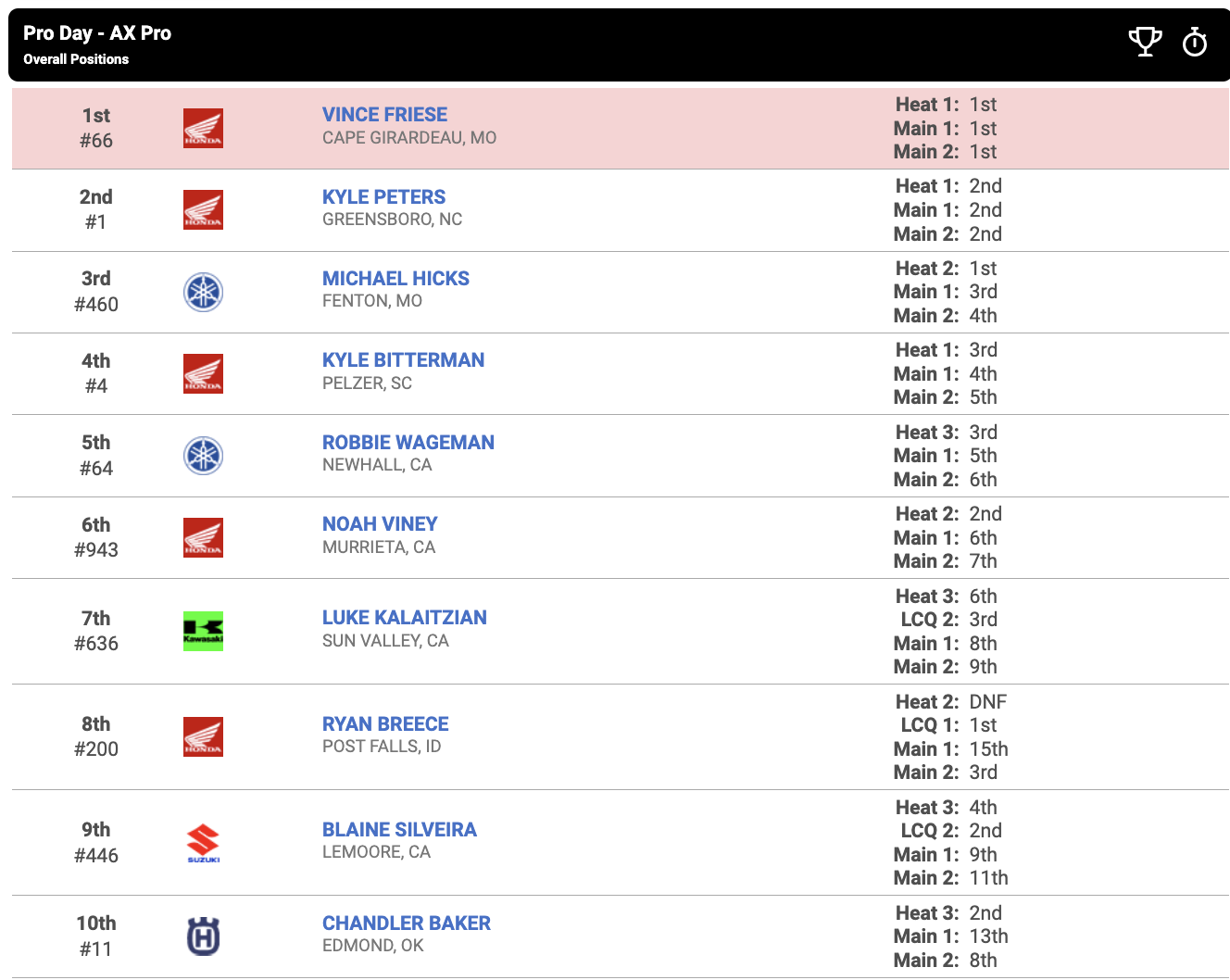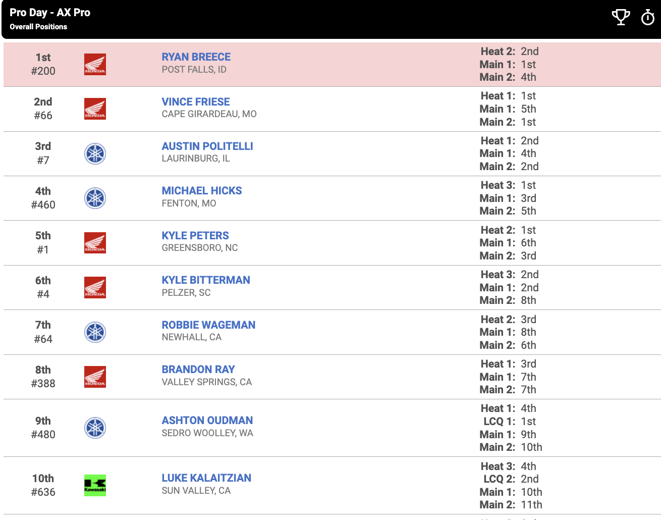 | Chase Sexton (KTM) | AMA Pro Motocross Championship | 450 Class |