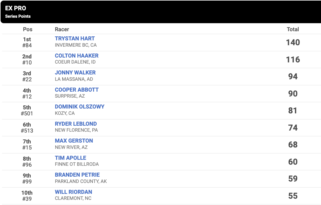 | Jess Pettis (KTM) | Canadian Triple Crown (Motocross) | 450 |
