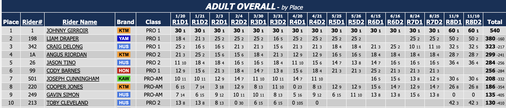 | Jonathan Girroir (KTM) | GNCC | XC1 |