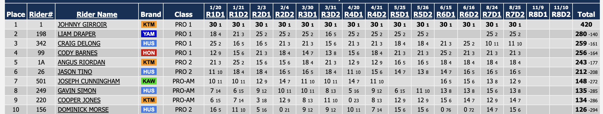 Jonathan Girroir (KTM) wrapped up the championship early.